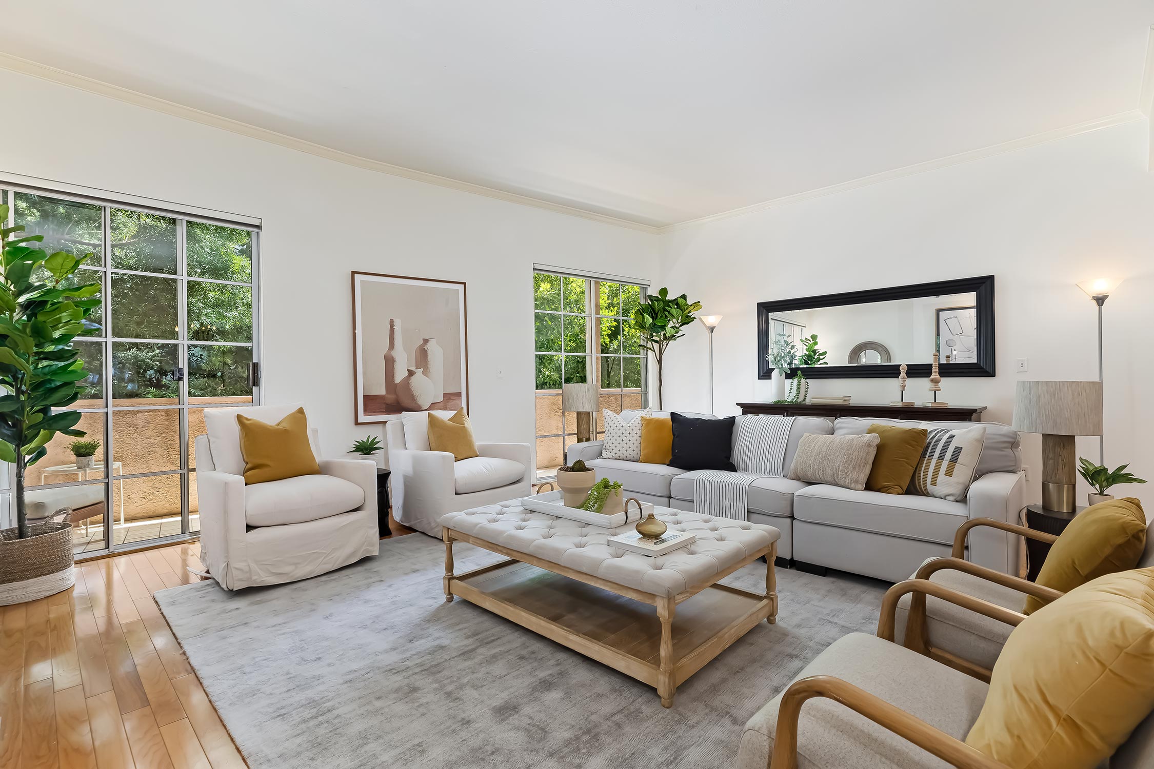 Gracious 2 bedroom, 2 bath condo in the heart of Westwood. Light and bright unit with high ceilings throughout. Open floor plan with a living room complete with a fireplace, wood floors, and sliding doors that lead to the balcony. The living room opens to the dining area, which is ideal for entertaining. Wide galley kitchen with side-by-side laundry area. Primary bedroom opens onto the balcony and has a walk-in closet and ensuite bath with separate tub and shower and double vanity. Don't miss this quiet condo in a 9 unit building close to UCLA and Westwood village. Tandem parking & pool as well!